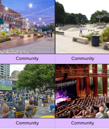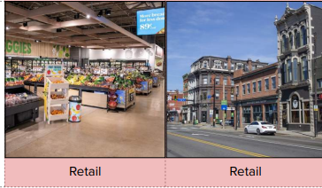 Use the following reference images to understand the types of buildings we can look into developing on these vacant properties. Once you've gotten a feel of the options, use the interactive maps below to drop pins for what you'd like to see developed on each site.