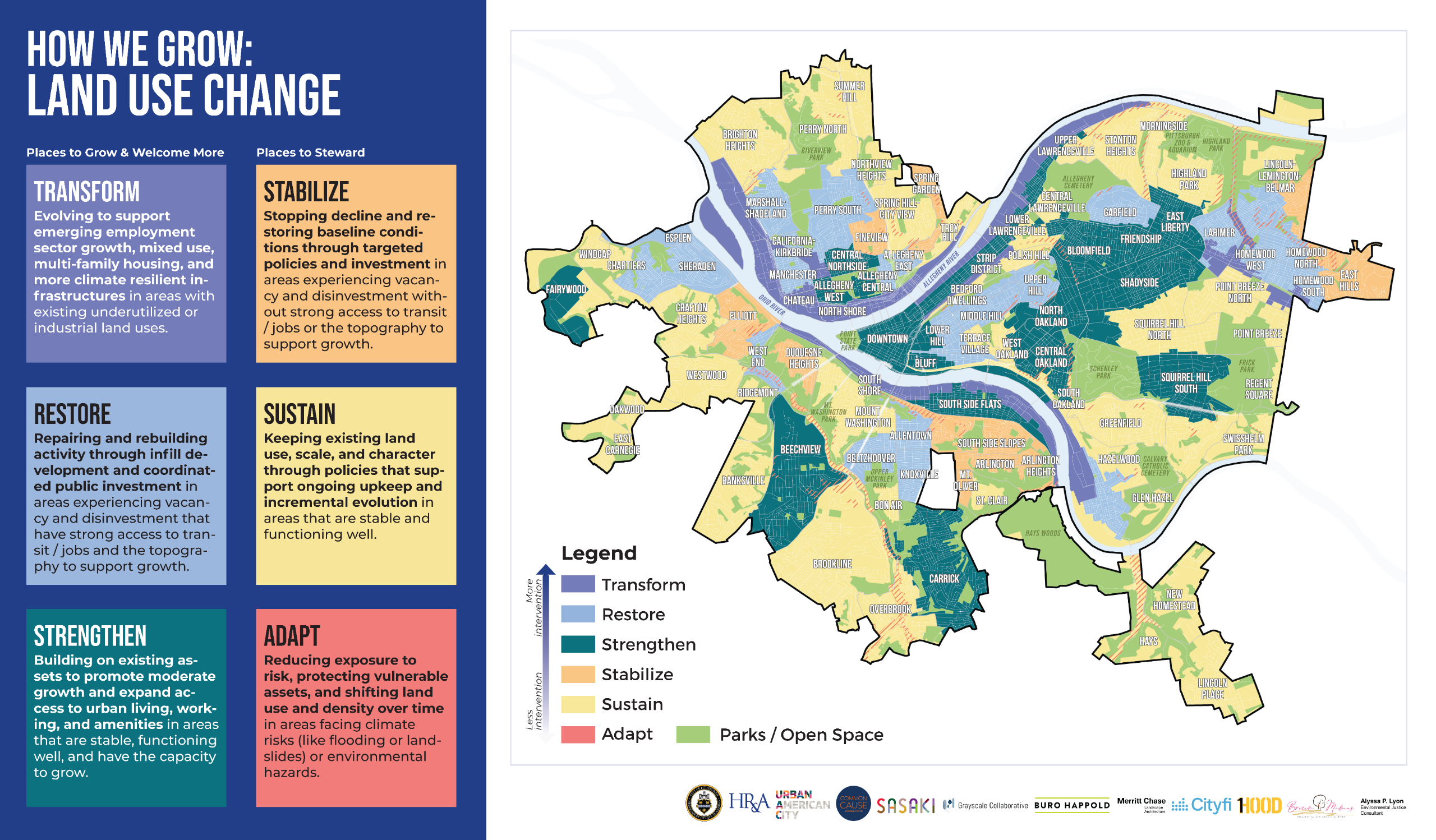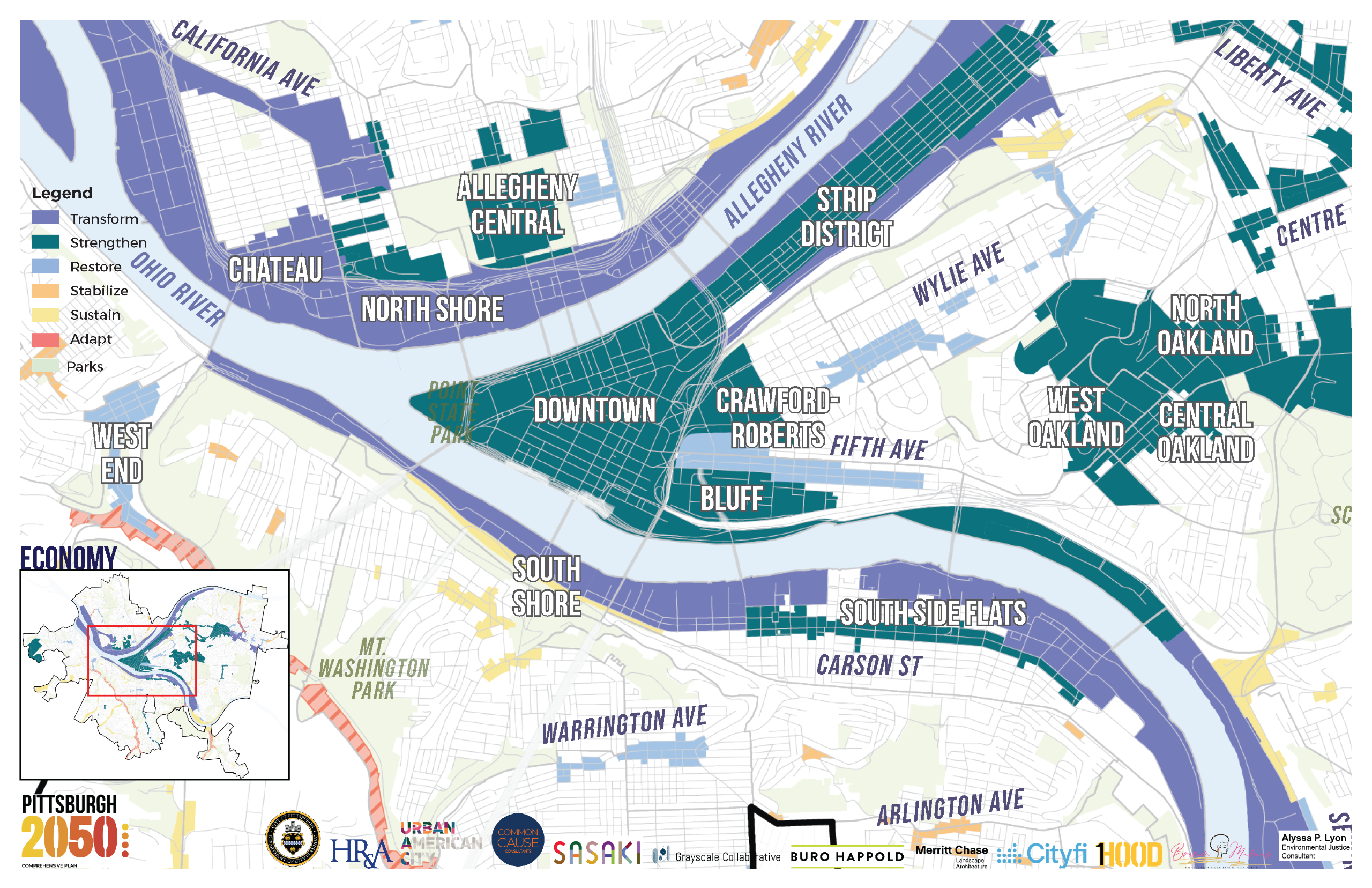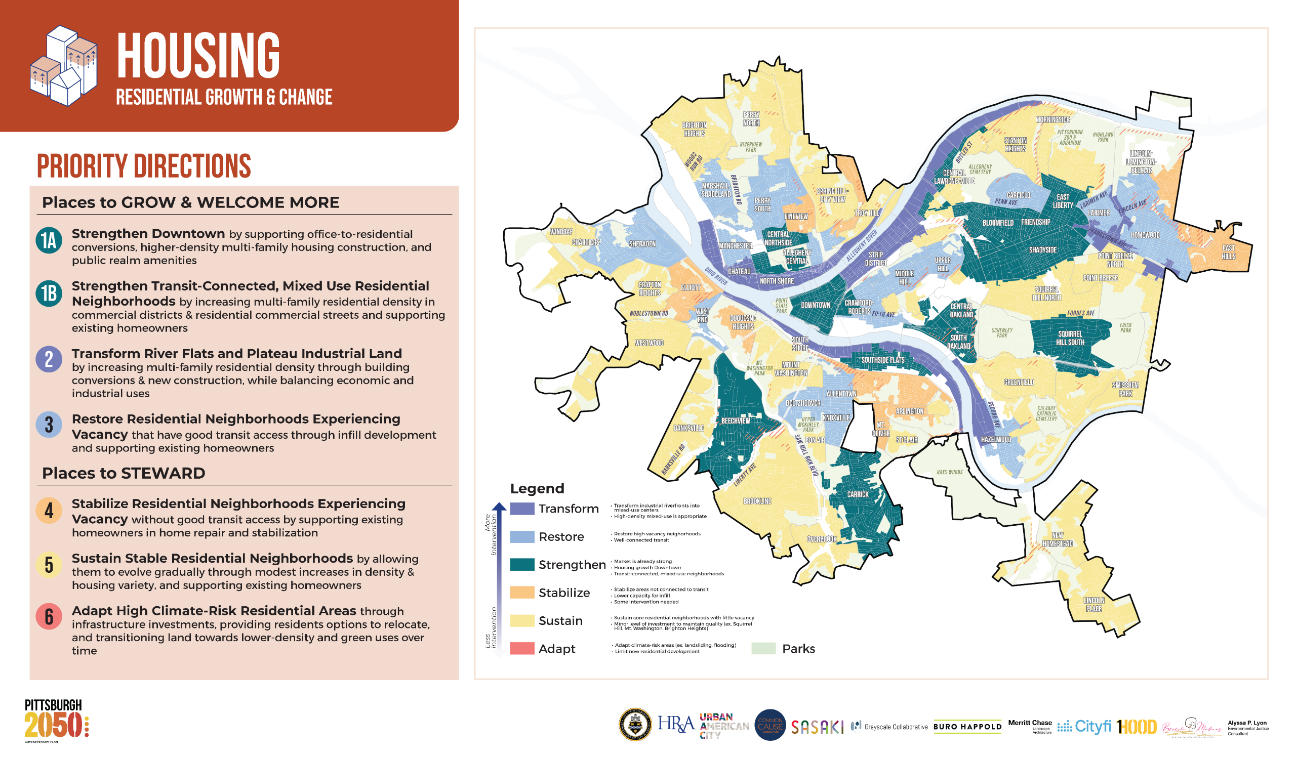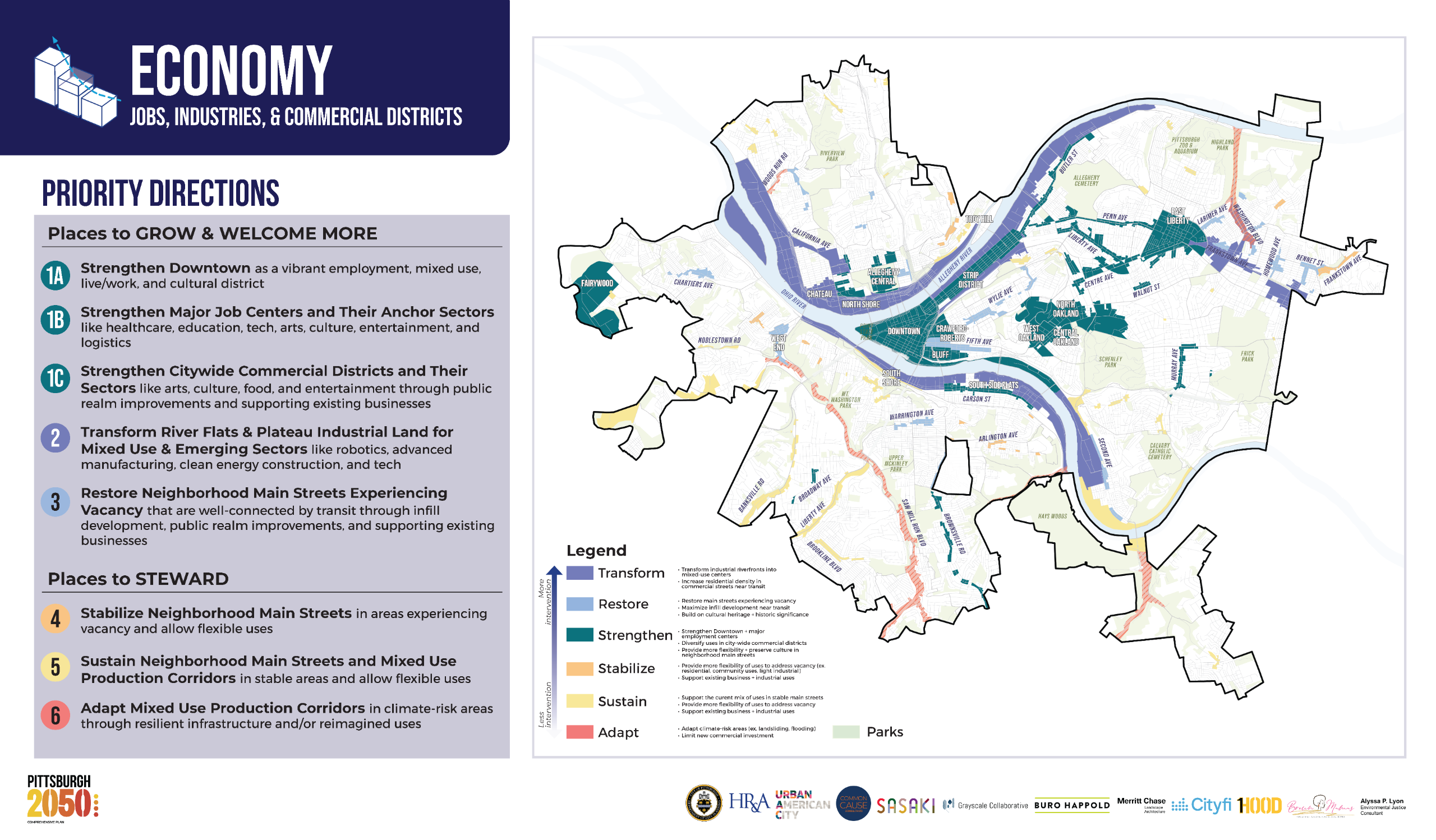 The following categories are what we're calling KEY DRIVERS. These are the primary categories our team has identified as being the driving factors in sustaining positive growth throughout Pittsburgh while ensuring current, long-time residents are included in the decision-making.