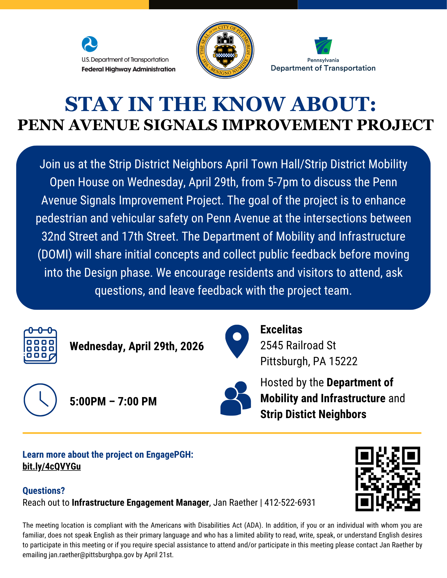 The Penn Avenue Signals Improvement Project aims to improve the safety, efficiency, and reliability for all users of Penn Avenue in the Strip District.