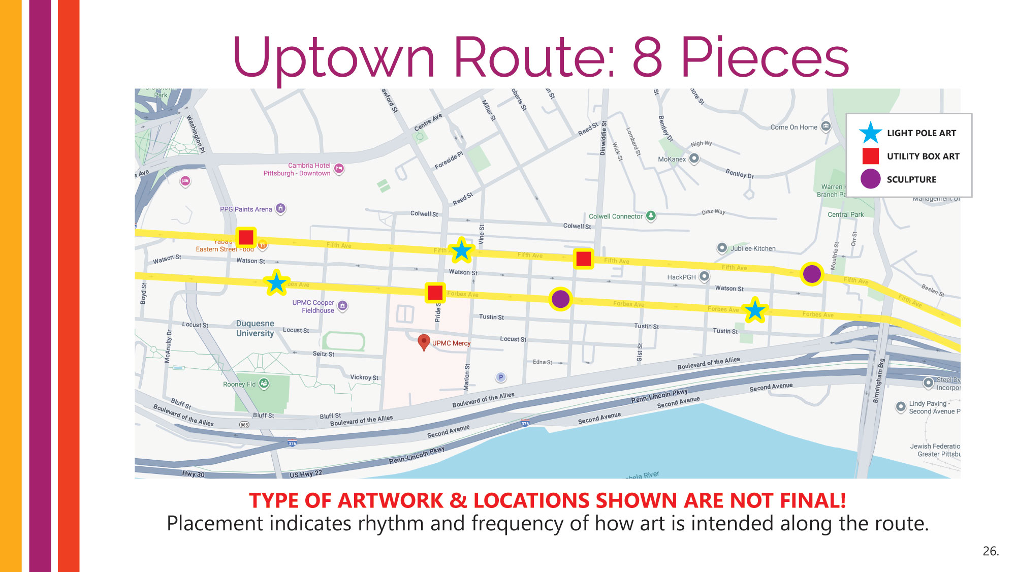 Planning and engagement for an upcoming public art project in the along the University Line in Pittsburgh