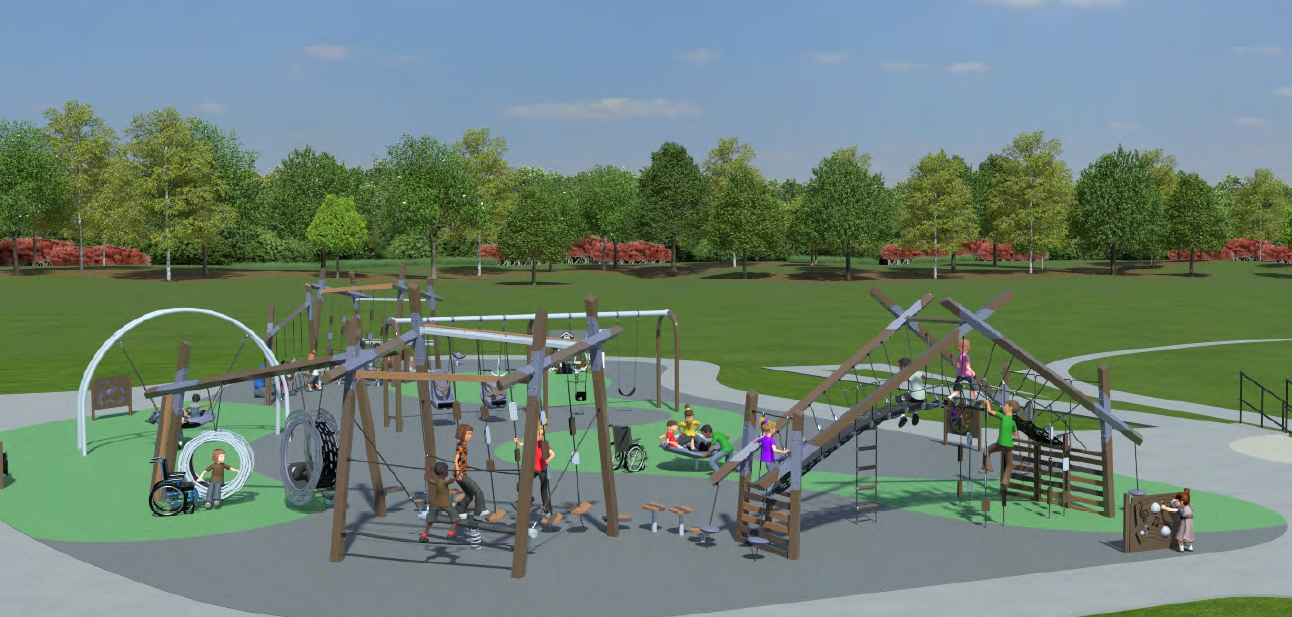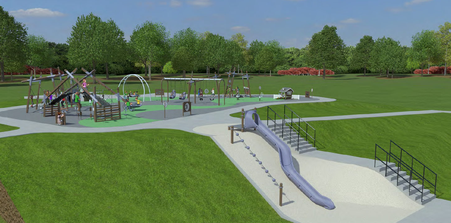 - Reconfigure and replace existing playground equipment and safety surfacing.