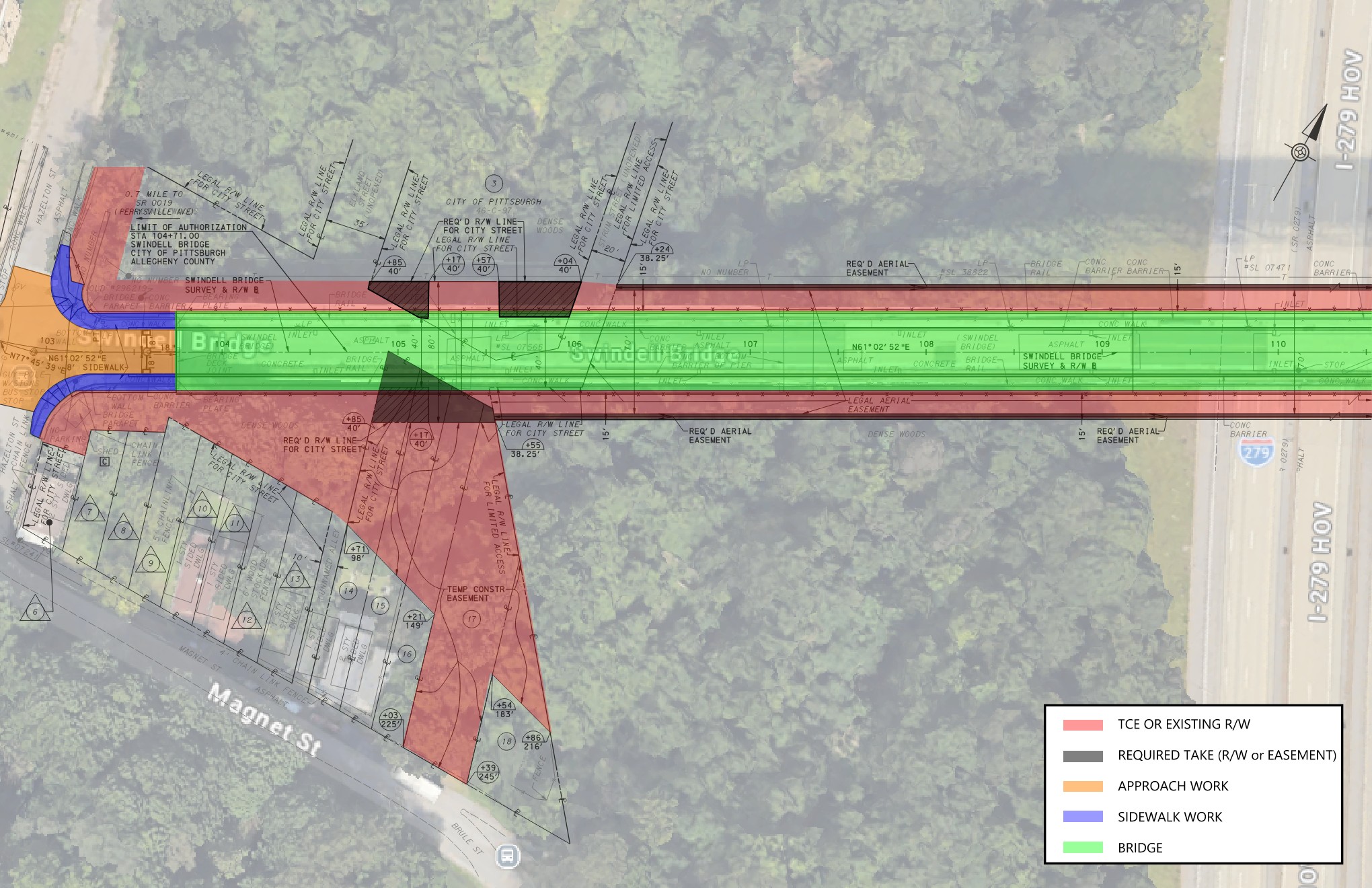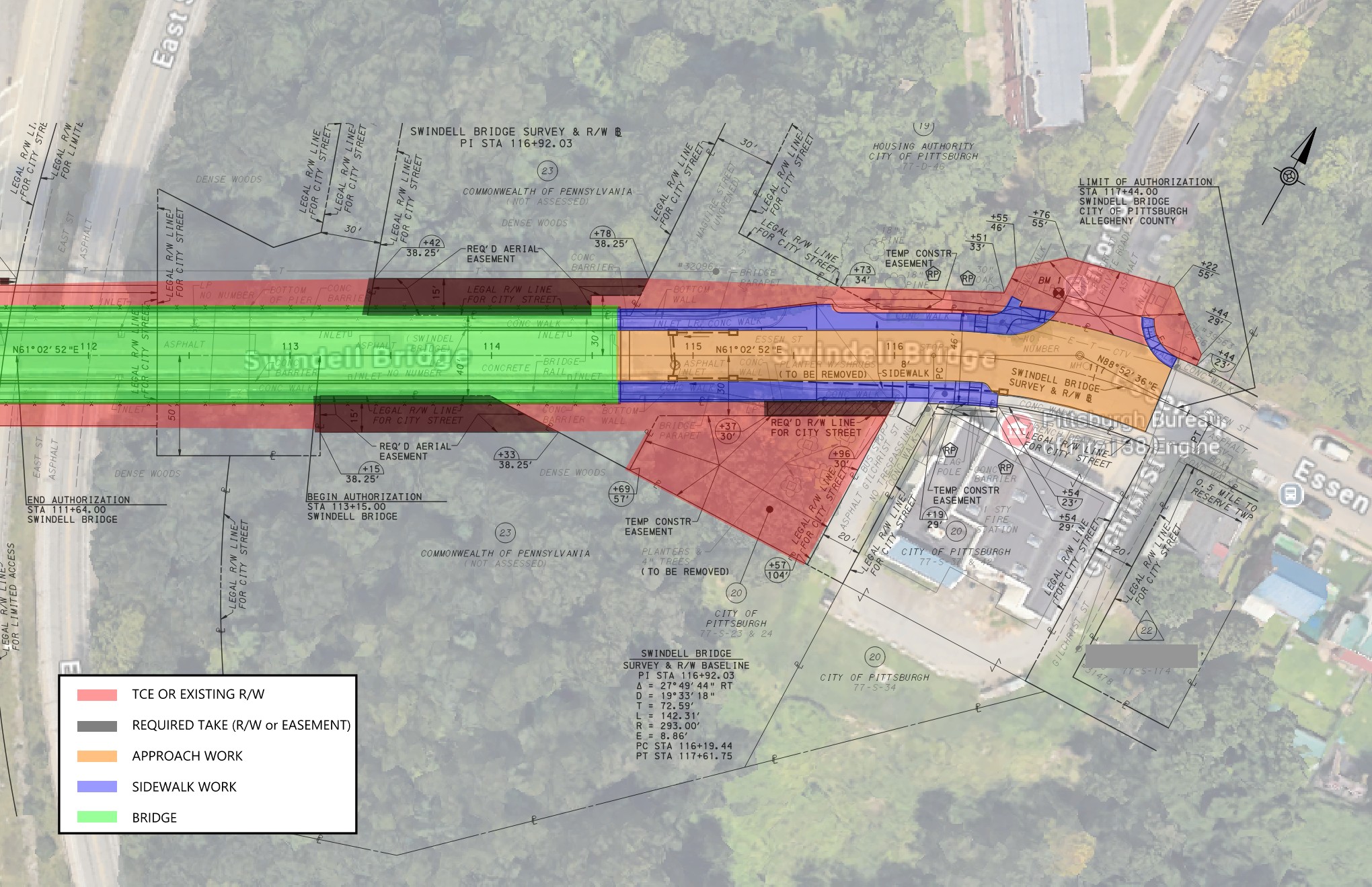 The City of Pittsburgh's Department of Mobility and Infrastructure has concluded the preliminary phase of engineering of the comprehensive rehabilitation project for the Swindell Bridge. Based on findings from the preliminary engineering phase, we have identified the area for potential impacts to properties in the vicinity of the structure and at its approaches. Impacts to private property include Temporary Construction Easements as well as the acquisition of Required Right of Way. These impacts are to facilitate access to the structure for the construction of repairs, and to accommodate future inspection and maintenance activities of the bridge.