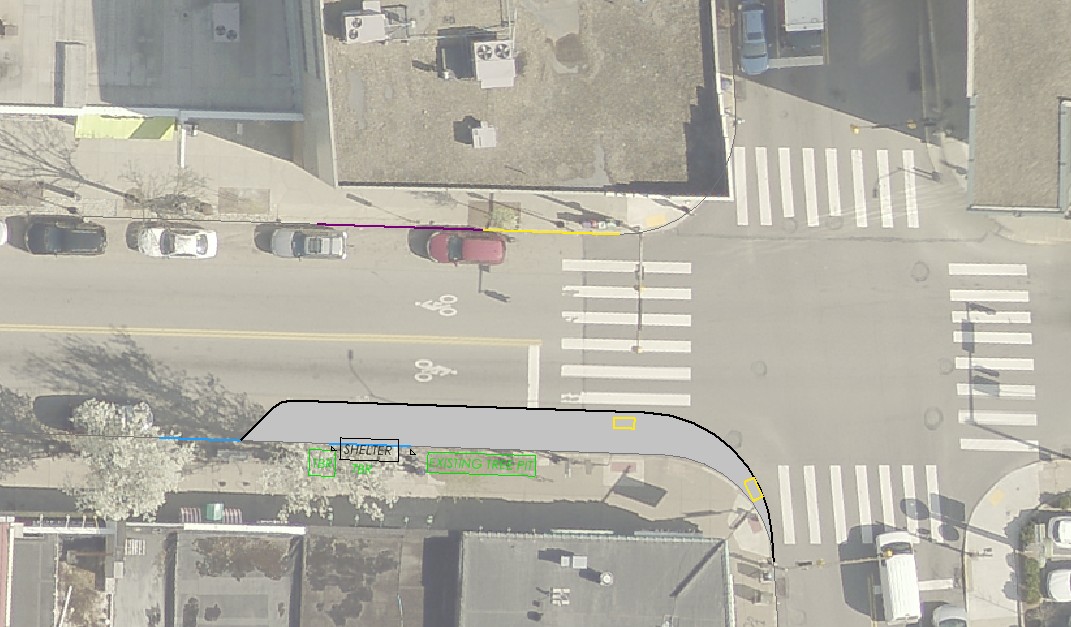 The Department of Mobility and Infrastructure is installing transit shelters for our Transit Stop Improvement Program. This program allows for the construction of new sidewalk to accommodate a bus shelter at locations where there is currently insufficient sidewalk. Locations that meeting the 'Location Criteria' below but do not meet the 'Sidewalk Space Requirements' are eligible for this program. Locations that meet both sets of criteria can accommodate a bus shelter as is, and requests for shelter at these locations should be submitted through 311.